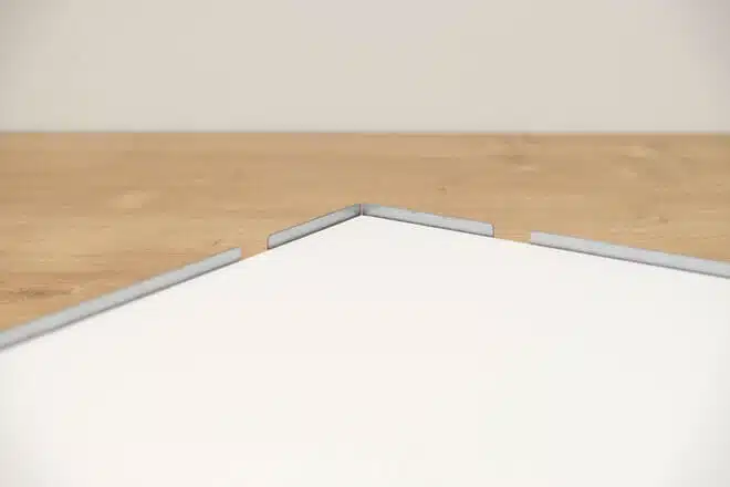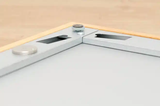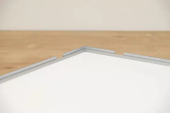 Der Conservo-Magnetrahmen lässt sich optional mit dem 5 mm hohen Einlegerahmen D5 als integriertem Abstandhalter ergänzen. Bei dieser Variante ist die Auswahl an Profilen und Leisten wegen der Breite des Abstandhalters/Einlegerahmen D5 limitiert. Auf Anfrage fertigen wir darüber hinaus als Sonderlösung den Conservo-Distance Magnetrahmen.